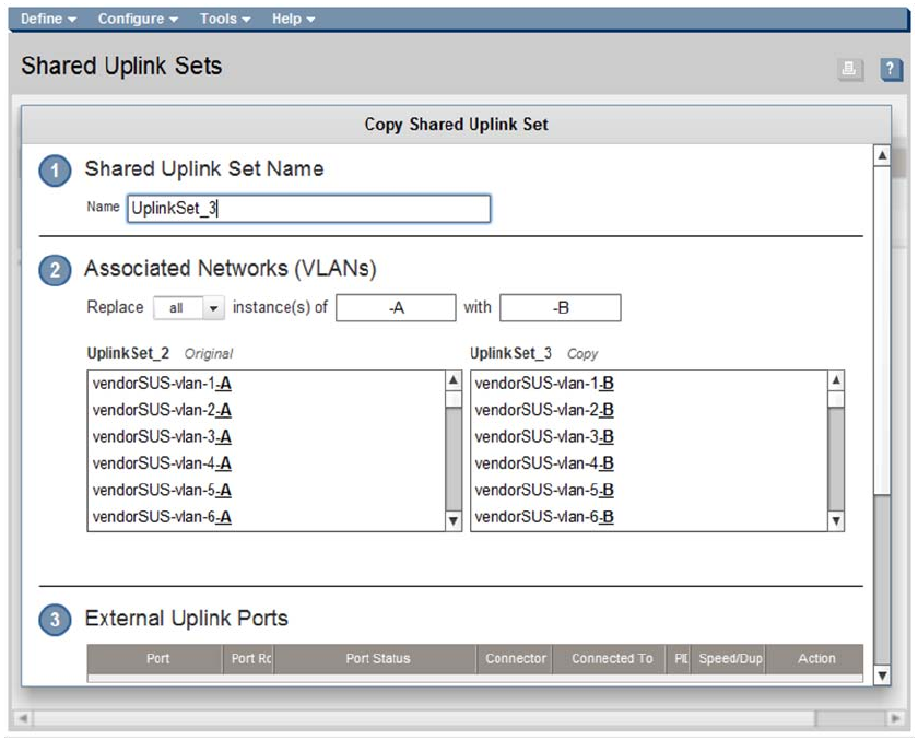 shared uplink set configuration. All of the associated networks and their properties are duplicated during the