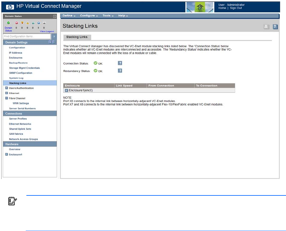 the Virtual Connect domain must be interconnected with stacking links. HP strongly recommends