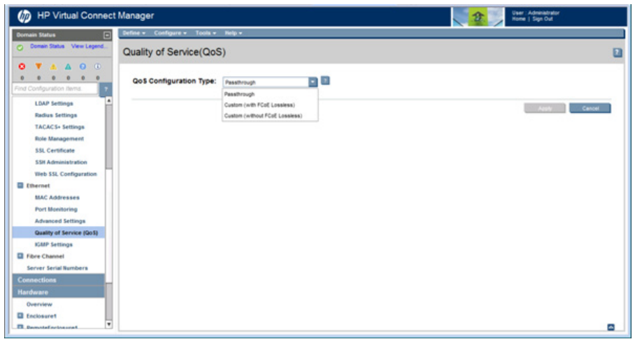 • Custom (without FCoE Lossless) (on page 106)—Enable QoS and allow a customized configuration.