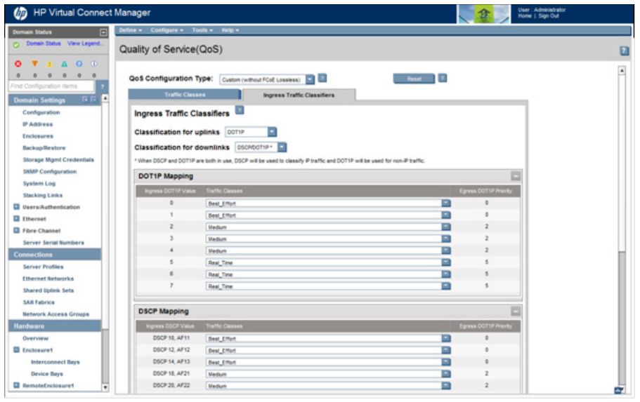 To change the traffic class for an Ingress DOT1P Value or Ingress DSCP Value, select a traffic class from the