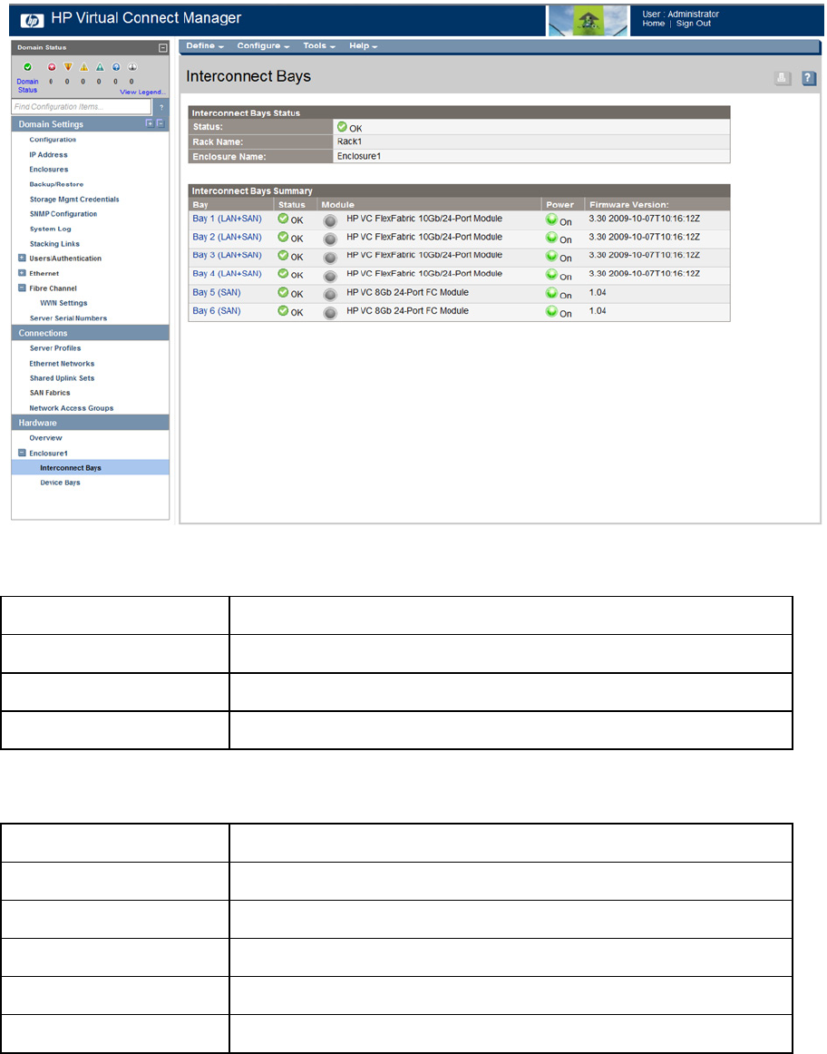 The following table describes the rows within the Interconnect Bays Status table in the Interconnect Bays
