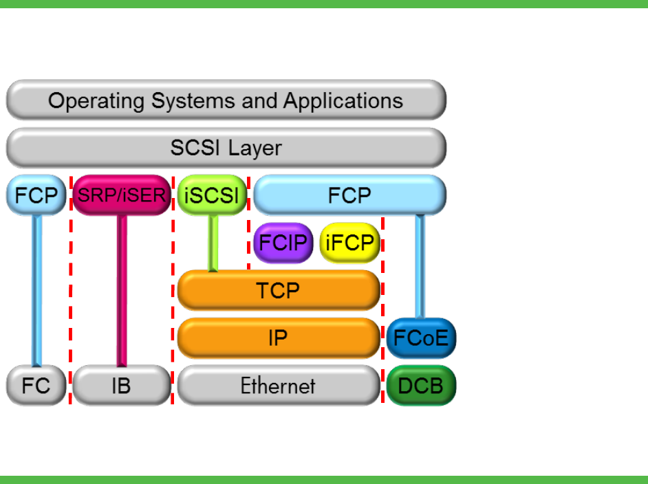 center). FCIP is a SAN extension protocol to bridge FC SANs across large geographical areas. It is not for