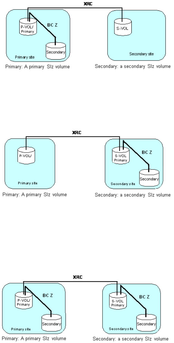 XRC S-VOL (secondary volume) and a BC Z primary volume. In this configuration, data is copied