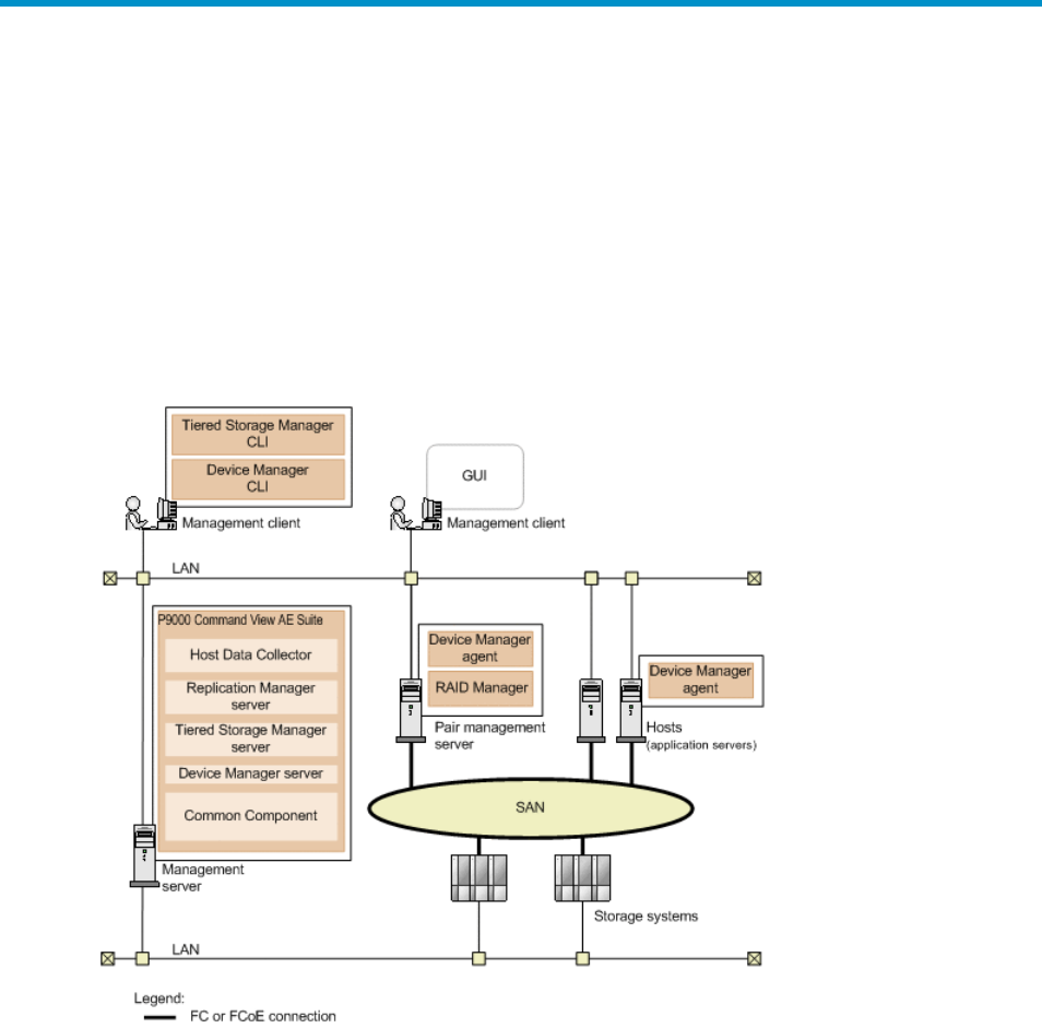 The major components configuring a system that uses Device Manager and Tiered Storage Manager