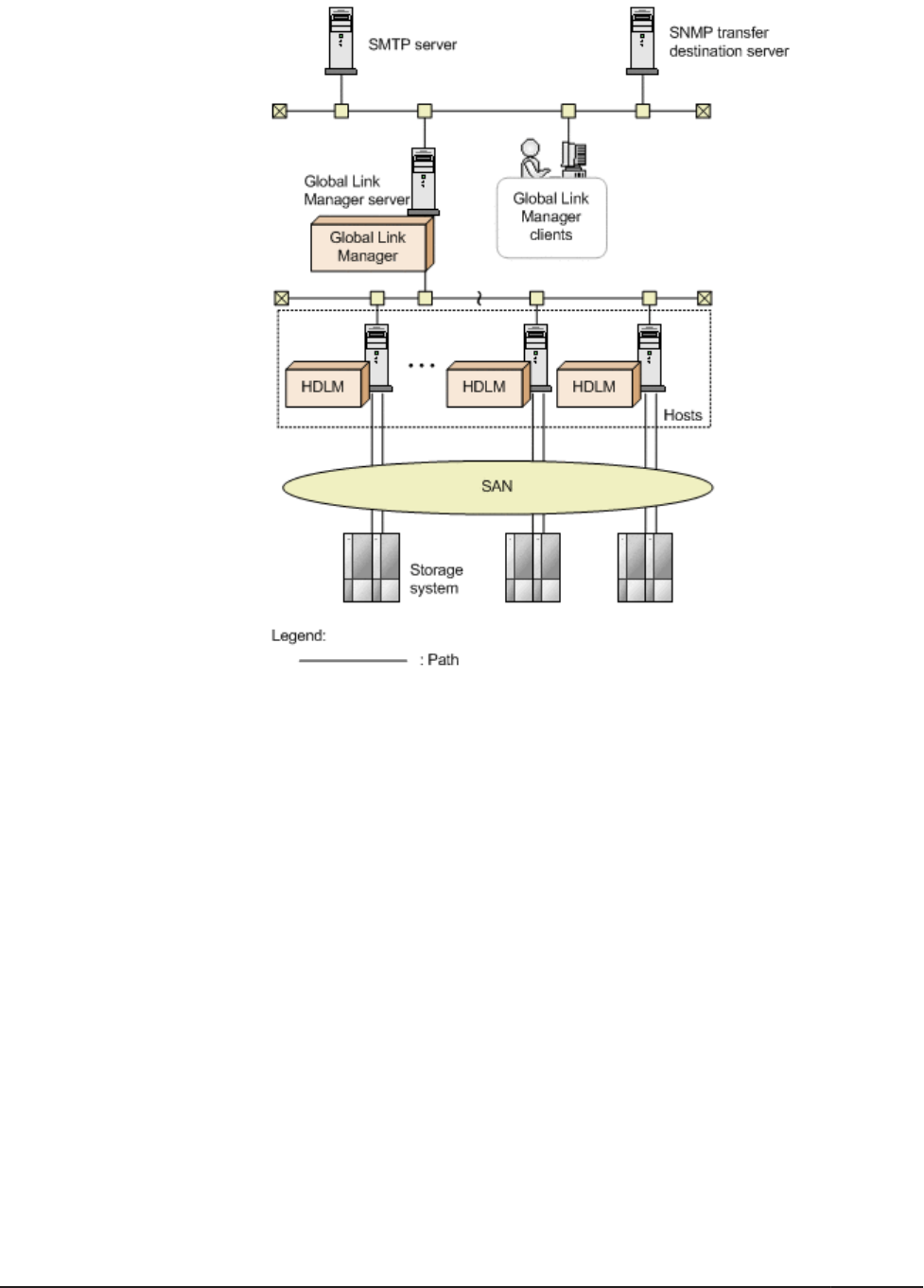Figure 2-15 Example System Configuration Using HDLM and Global Link