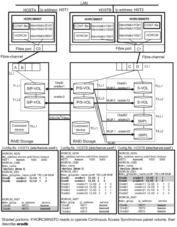 • Designate a group name (Oradb) on Continuous Access Synchronous environment of HOSTA.