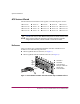 Replacing HSx80 Cache Modules in Single and Dual-Redundant Controller Configurations Figure 15 and Figure 16 provide general information about the cache module. 5 1 ~ 4 2 3 1 2 3 4 5 Cache memory power LED External cache battery (ECB) cable Retaining lever Dual inline memory module (DIMM) Backplane connector Figure 15: Cache module Note: In Figure 16, the environmental monitoring unit (EMU) and power verification assembly (PVA) modules are present in only HP StorageWorks BA370 enclosures.