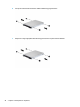 nyomja le az SSD-meghajtó másik végét (2), és ezután csavarral rögzítse az SSD-meghajtót az alaplapra