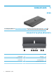 רכיבים בדופן הצד של יחידת הבסיס רכיבים ()1 סורק טביעות אצבע ()3 מחבר ™ USB Type-C Thunderboltתומכת בטעינה במצב שינה ()2 שקע משולב ליציאת שמע (אוזניות)/כניסת שמע (מיקרופון) ()4 מחבר USB SuperSpeedתומך בטעינה במצב שינה רכיבים בחלק האחורי של יחידת הבסיס רכיבים 2 ()1 מחברי )4( USB SuperSpeed Plus ()5 מחבר מתח ()2 יציאת HDMI ()6 שקע ( RJ-45רשת) ()3 יציאת DisplayPort ()7 חריץ כבל אבטחה ()4 כניסת D