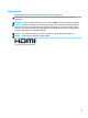 Otra monitora pievienošana Datora aizmugurē esošie DisplayPort un augstas izšķirtspējas multivides saskarnes (HDMI) savienotāji sniedz jums iespēju datoram pievienot sekundāros monitorus. Pievienot ne vairāk kā divus monitorus var vienā no šādām konfigurācijām: ● divi DisplayPort monitori, kas savienoti ziedlapķēdē; ● viens monitors, kas pievienots DisplayPort pieslēgvietai un viens monitors, kas pievienots HDMI pieslēgvietai.