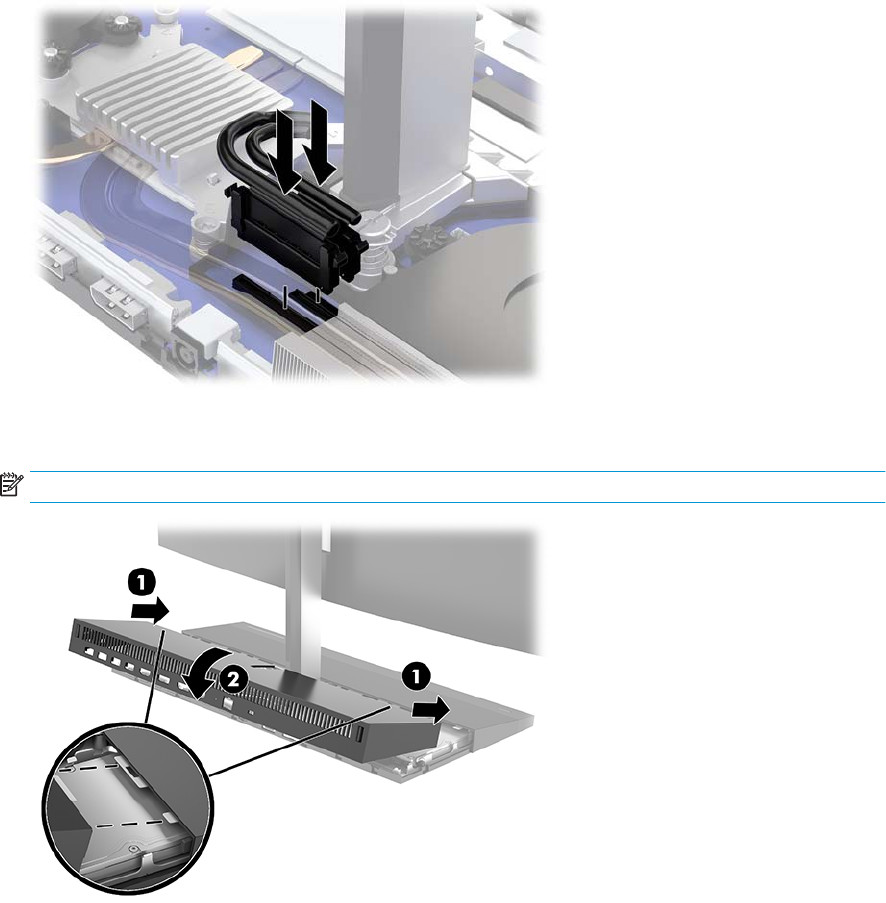 PIEZĪME. Lai novērstu bojājumus vāka nomainīšanas laikā, raugieties, lai visi kabeļi ir izvietoti pareizi.