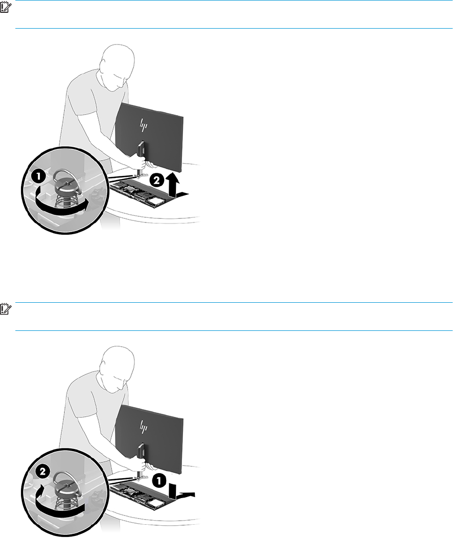 atbrīvojot to no mazā metāla ksēšanas izciļņa, un pēc tam izceliet monitoru no pamatnes (2).