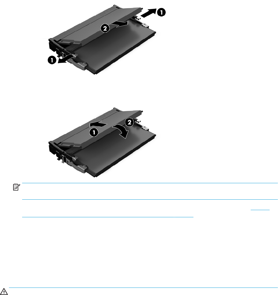 6. Lai noņemtu atmiņas moduli, atspiediet uz ārpusi abus ksatorus abās atmiņas moduļa (1) pusēs un pēc