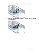 4. 抓住背面板上的网络摄像头插槽在显示器头的顶部和将脱离显示器头面板拉的连接点 (1),然后将