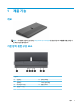 기본 장치 측면 구성 요소 구성 요소 (1) 지문 인식기 (3) HP 슬립 앤 차지 기능 지원 USB Type-C Thunderbolt™ 포트 (2) 오디오 출력(헤드폰)/오디오 입력(마이크) 콤 보잭 (4) HP 슬립 앤 차지 기능 지원 USB SuperSpeed 포트 기본 장치 뒷면 구성 요소 구성 요소 2 (1) USB SuperSpeed Plus 포트(4개) (5) 전원 커넥터 (2) HDMI 포트 (6) RJ-45(네트워크) 잭 (3) DisplayPort 출력 (7) 보안 케이블 슬롯 (4) DisplayPort 입력 1 장 제품 기능