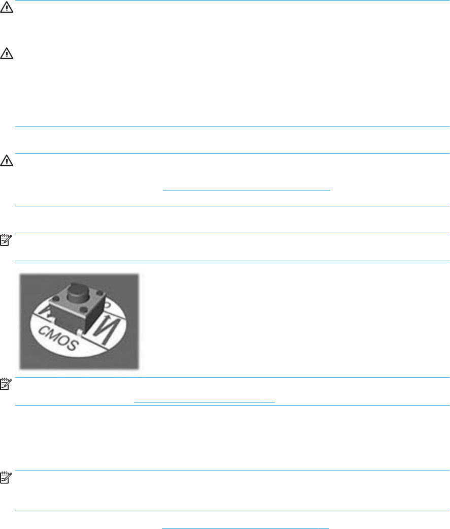 NOTE: For assistance locating the CMOS button and other system board components, see the system