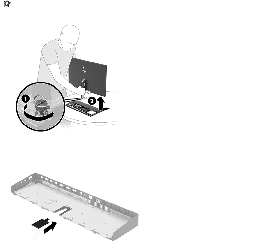 4. As shown in the following illustration, loosen the two captive screws at the base of the display head’s