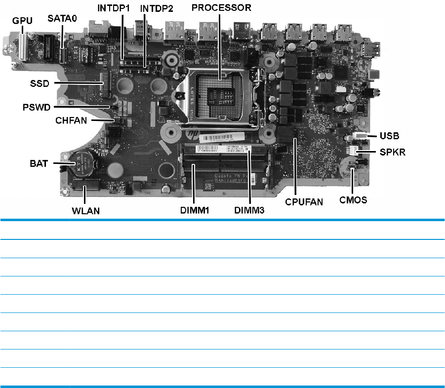 INTDP1 Black Display connector DIMM1 Black Memory module