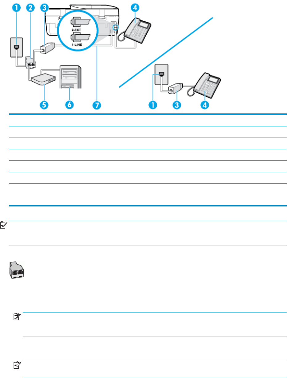 GHI CHÚ: Bạn cần mua một bộ chia song song. Bộ chia song song có một cổng RJ-11 ở phía trước