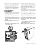 Removing an Add-in Card 1 Complete the procedures to prepare the PC and remove the side panel as described in “Opening and Closing the PC” on page 1. 2 Gently lay the PC on its side. 3 Inside the PC, locate the add-in card slots on the motherboard. 4 If you are replacing a card, make a note of any external or internal cables attached to the card, and then disconnect them. 5 Loosen the screw on the card you are replacing.