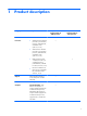 Table of contents 1 Product description ........................................................................................................... 1 2 External component identification ..................................................................................... 6 Display ................................................................................................................................... 6 Buttons and speakers ..........................................................................