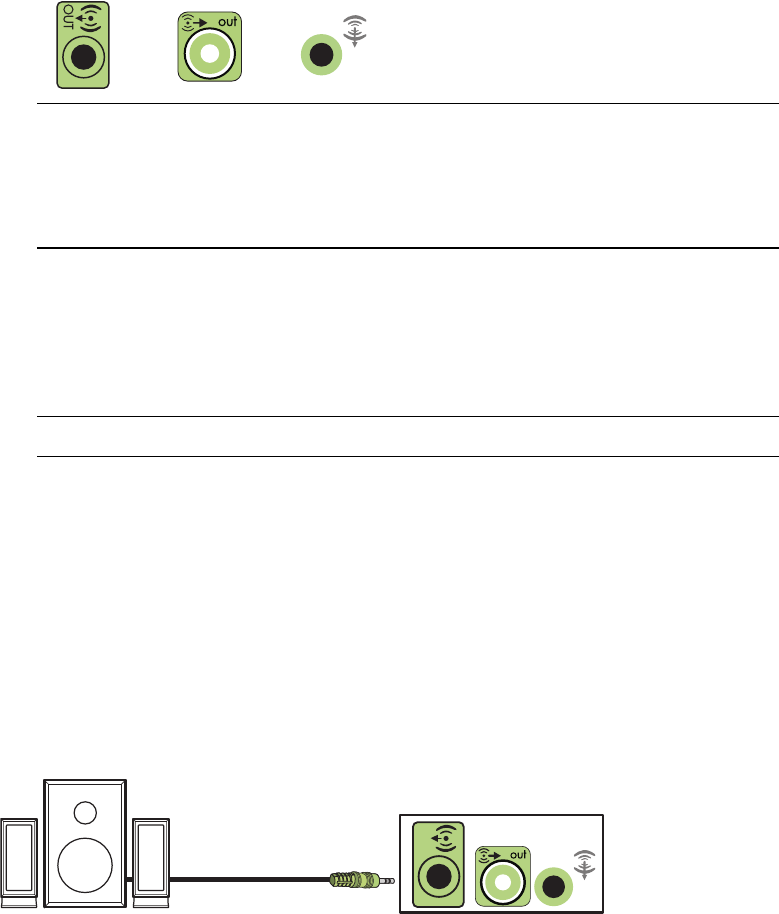 2 Connect the speaker cable to the lime green Audio Line Out connector that matches