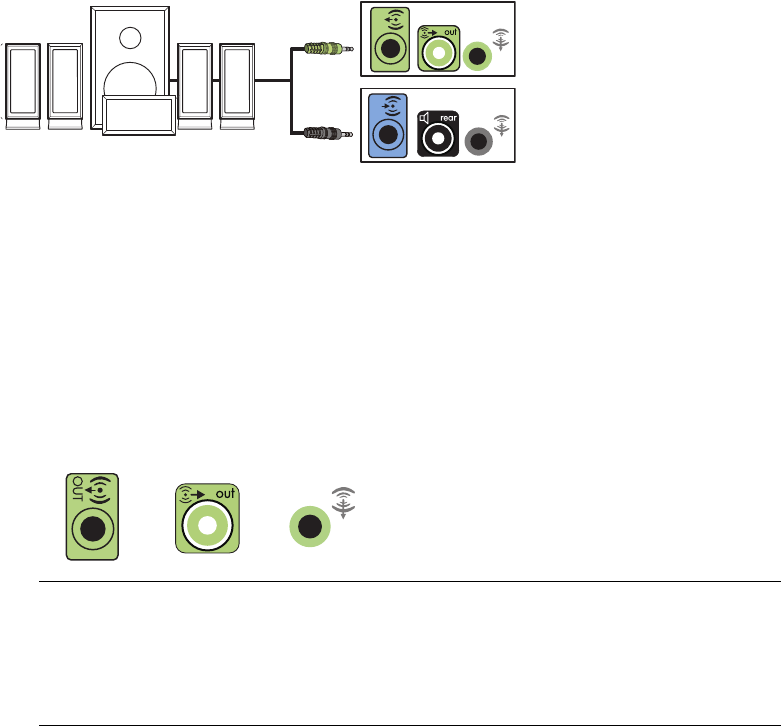 2 Connect the front speaker cable to the lime green Audio Line Out connector that