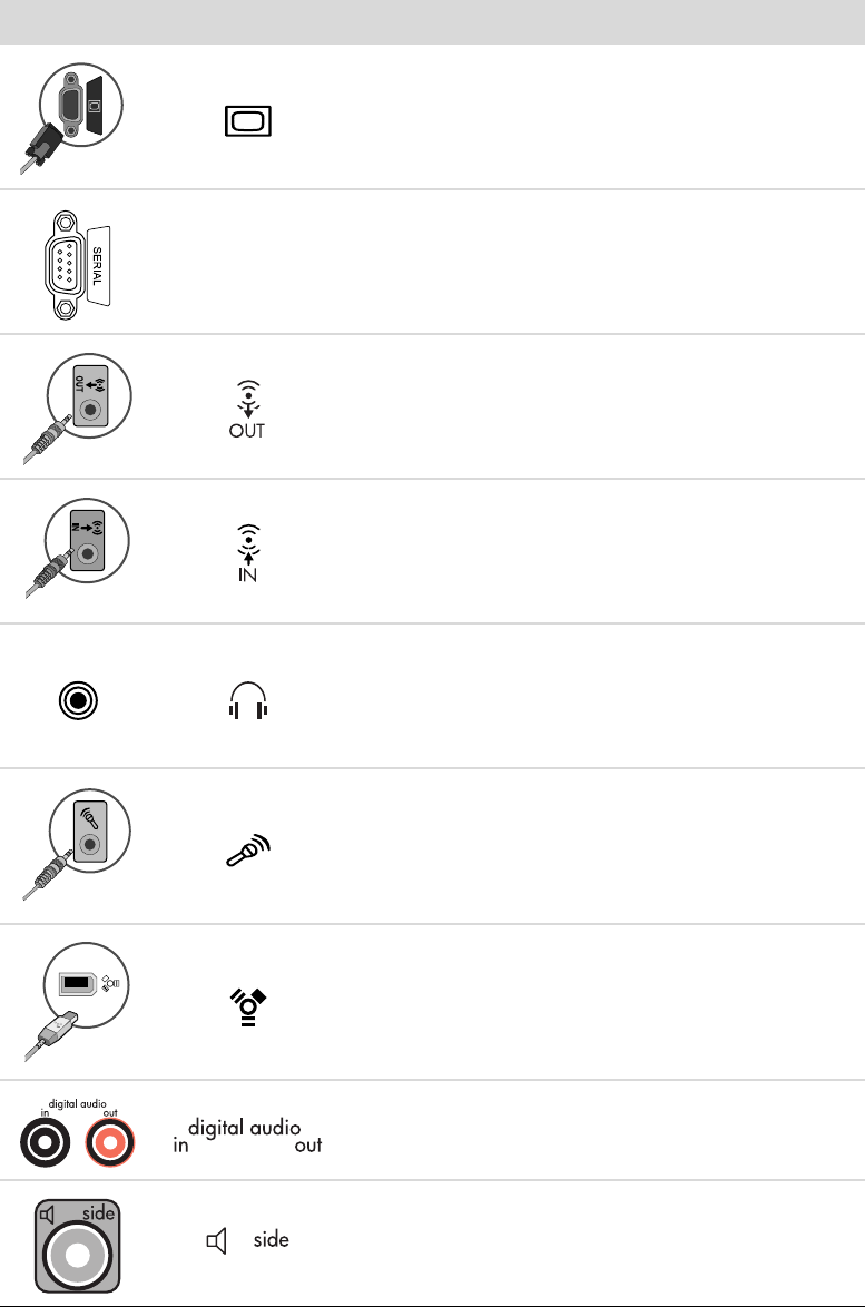 Connector Icon/label Description and function (continued)
