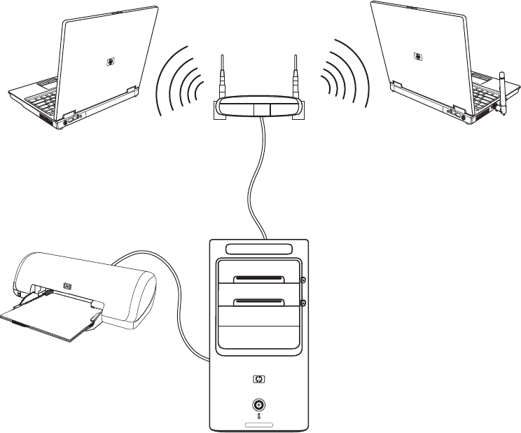 connection to a wireless router. The desktop computer also has a printer that it shares with