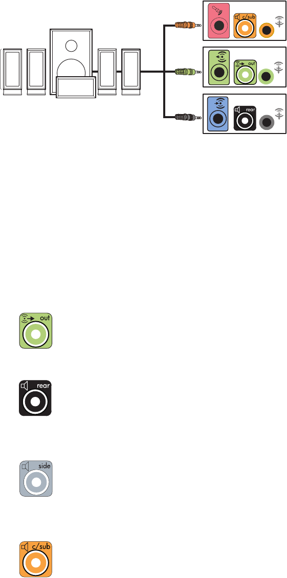 3 Connect the rear speaker cable to the black connector on the back of your computer.