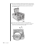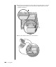 4 Pull the drive cage release tab (E) back. Align the four holes on the top of the