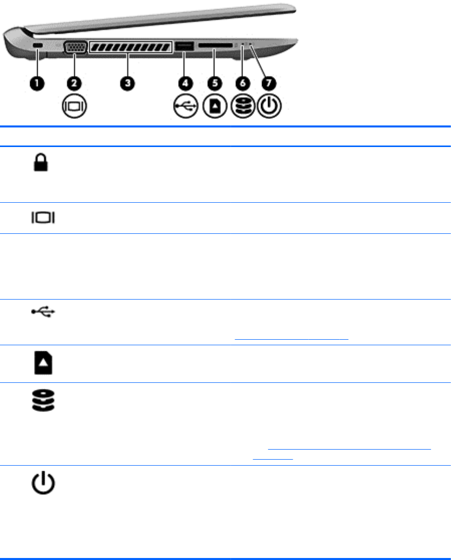Security cable slot Attaches an optional security cable to the computer.