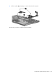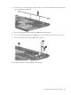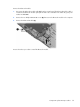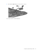 1. Disconnect the USB board cable (1) from the system board. The USB board cable and num lock light