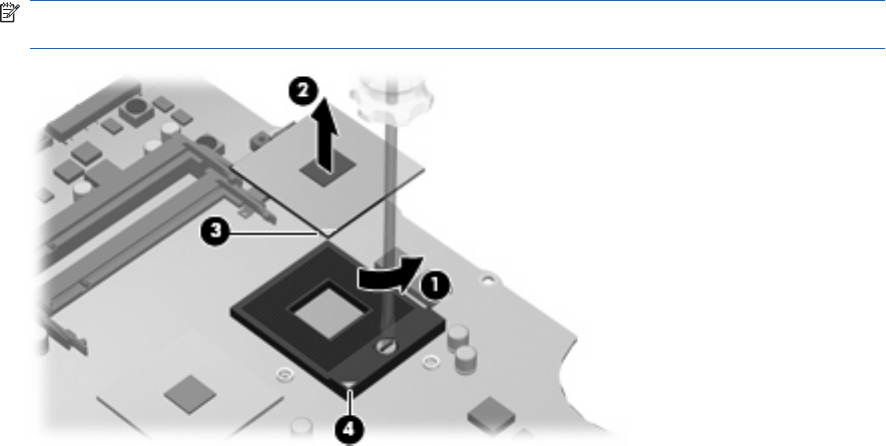 NOTE: The gold triangle (3) on the processor must be aligned with the triangle icon (4) embossed