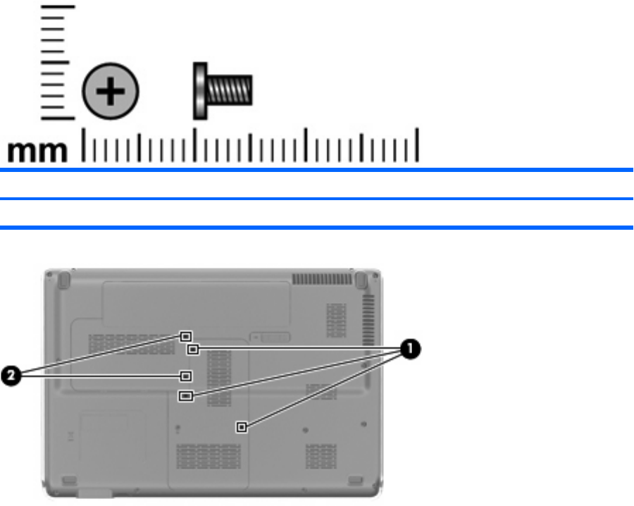 (1) 3 captive screws that secure the memory module compartment cover to the computer (screws are