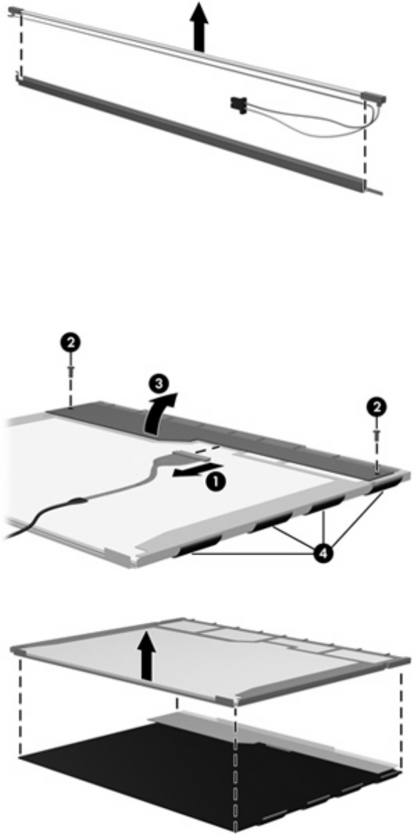 22. Release the tape (4) that secures the LCD panel to the display rear panel.