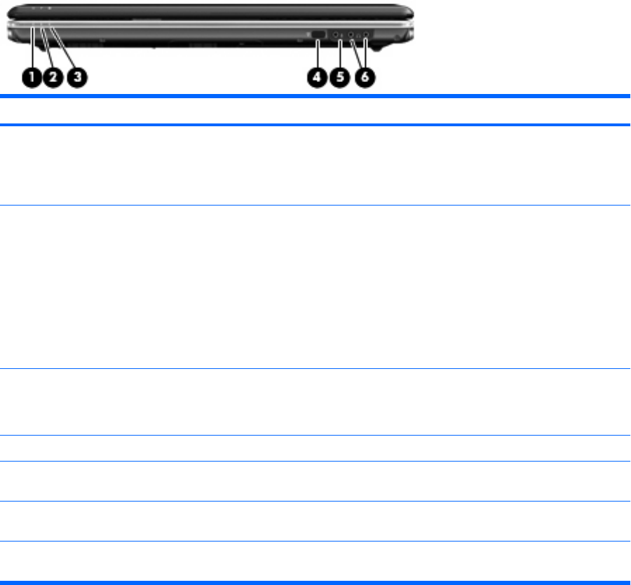 (5) Audio-in (microphone) jack Connects an optional computer headset microphone, stereo array