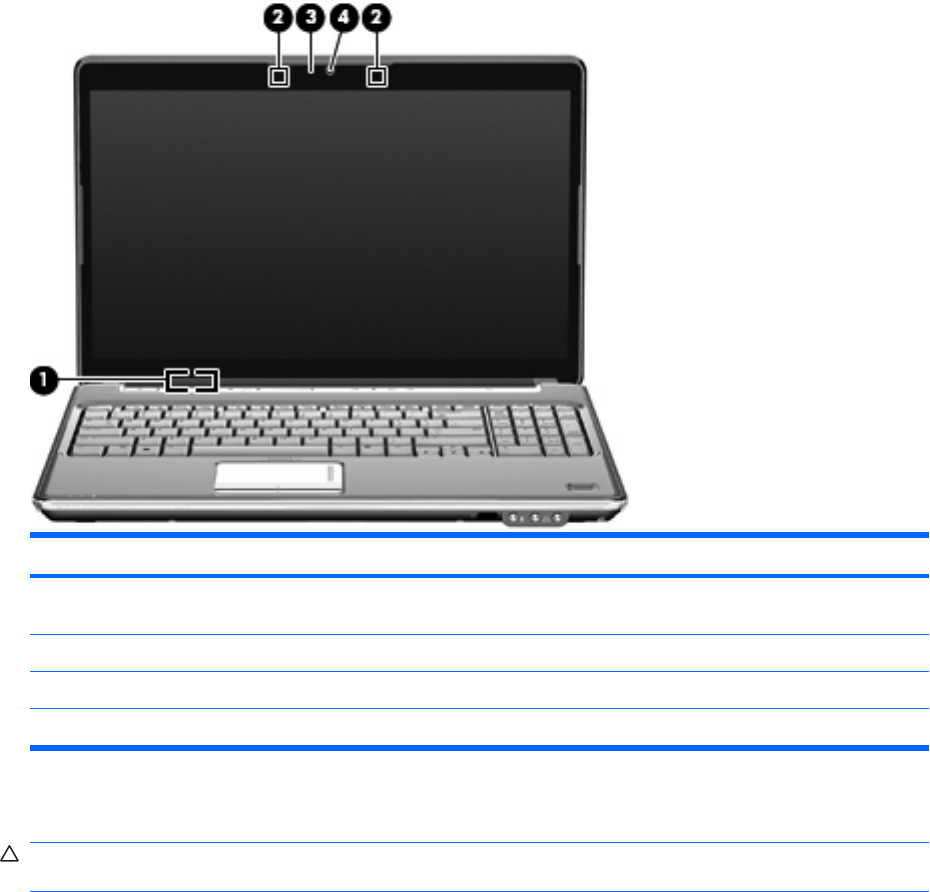 (4) Integrated webcam Records audio and video and captures still photographs.