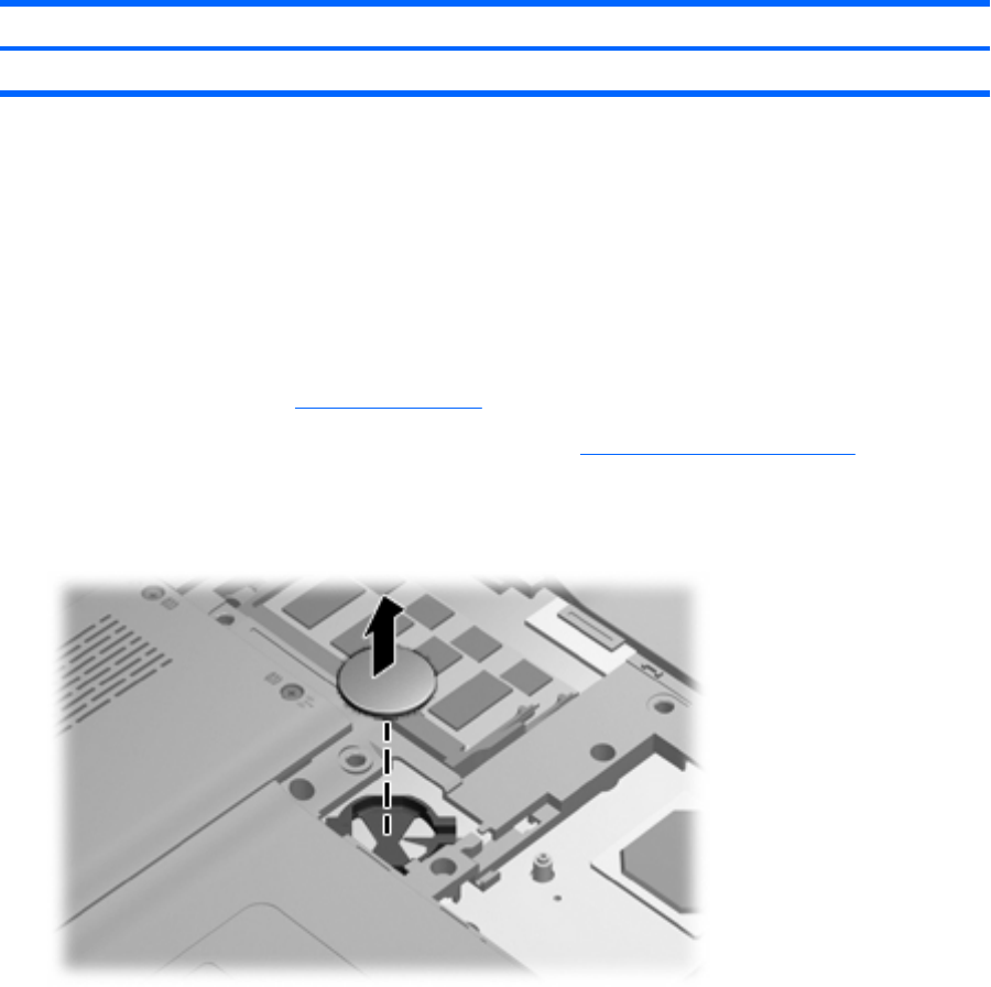 Use a non-conductive pointed tool to pry the RTC battery from the socket on the system board.
