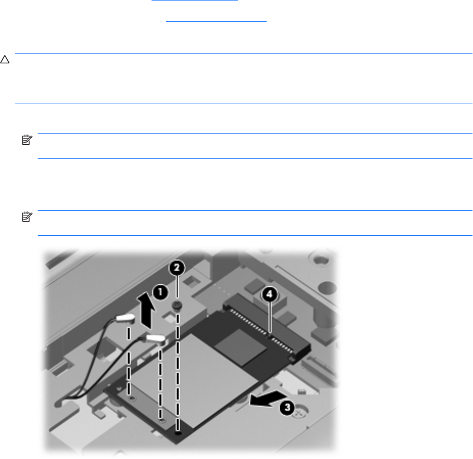 NOTE: WLAN modules are designed with a notch (4) to prevent incorrect insertion into the WLAN