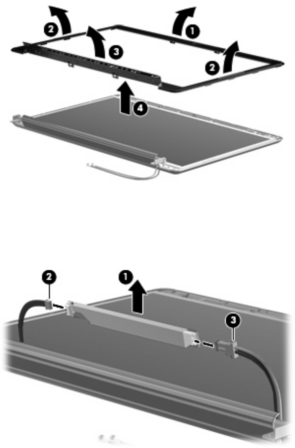 30. Remove the display bezel (4). The display bezel is available using spare part number 512359-001
