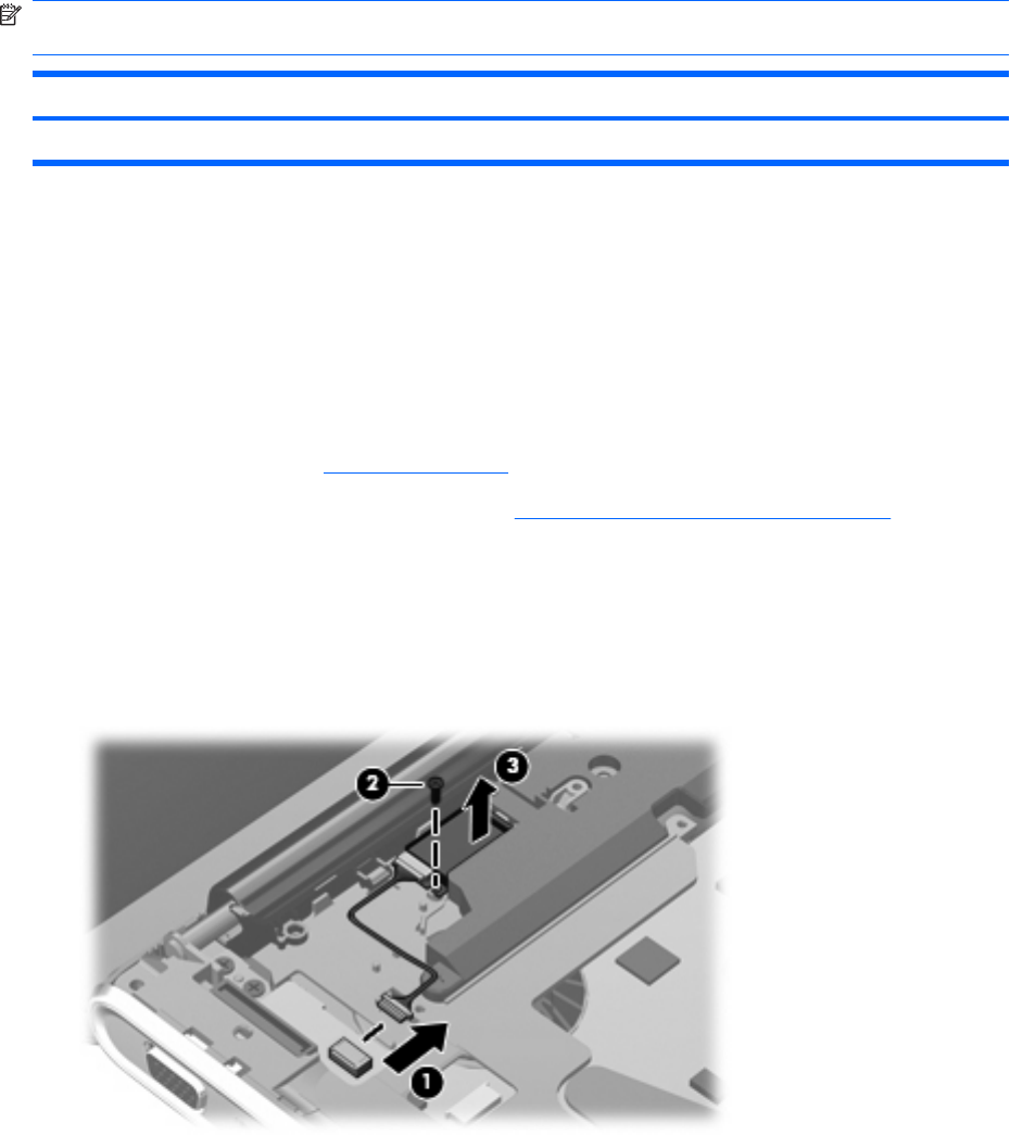 1. Disconnect the Bluetooth module cable (1) from the system board.
