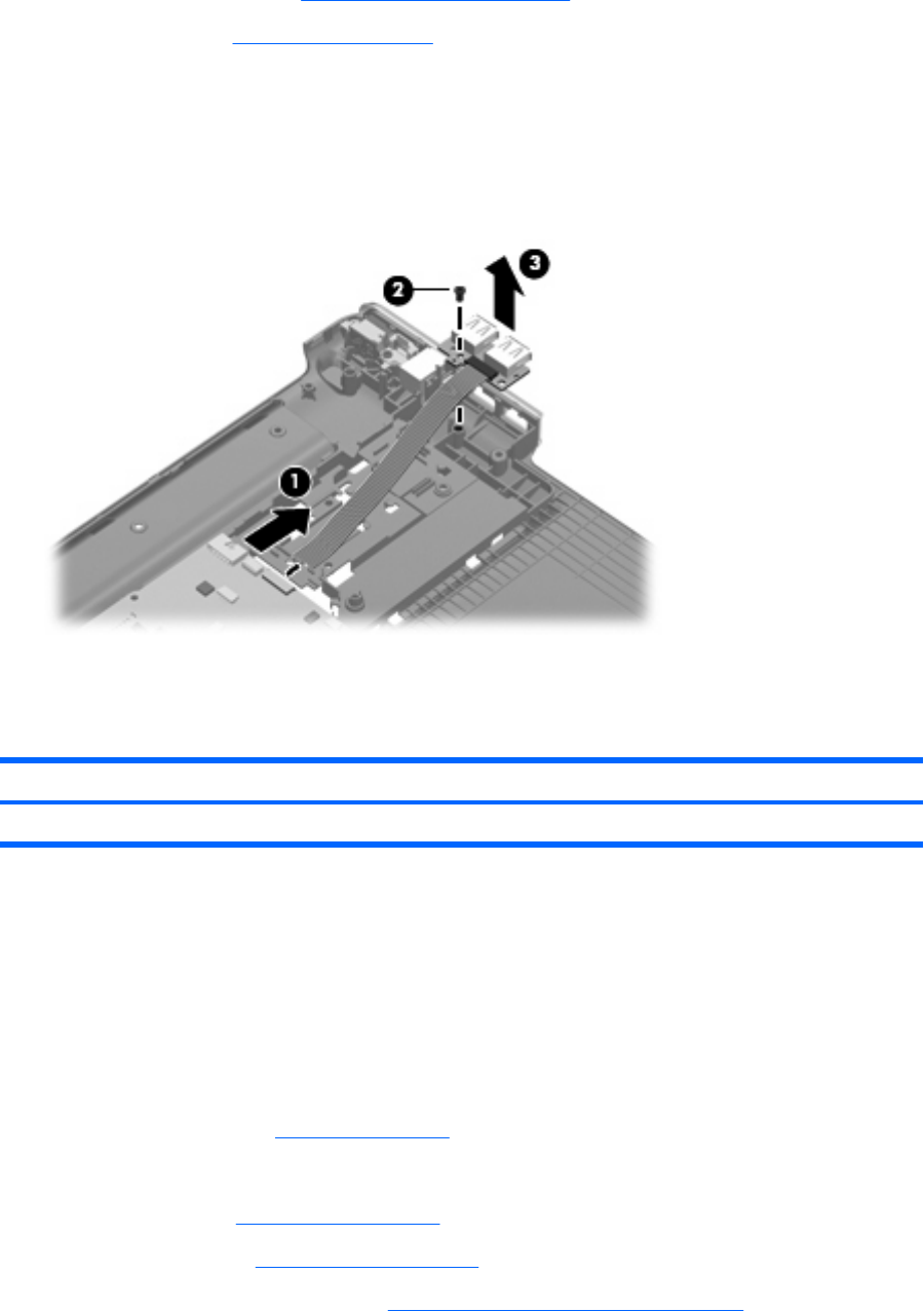 1. Disconnect the USB board cable (1) from the LIF connector on the system board.