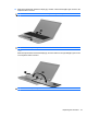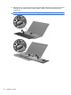 12. Slide the keyboard back toward the display (1), and then rotate it forward (2) to gain access to the
