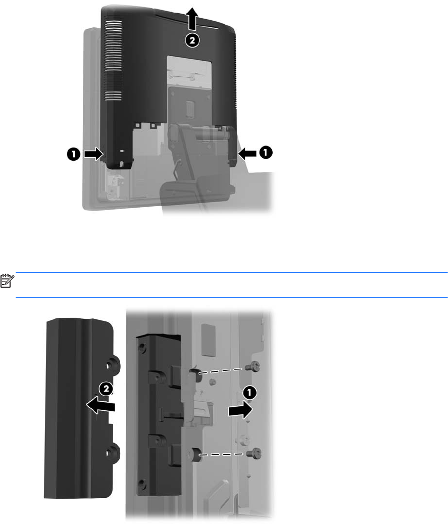 4. Press inward on the buttons located near the bottom sides of the display head's back panel (1)