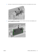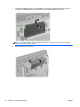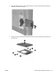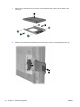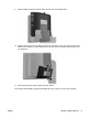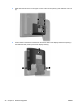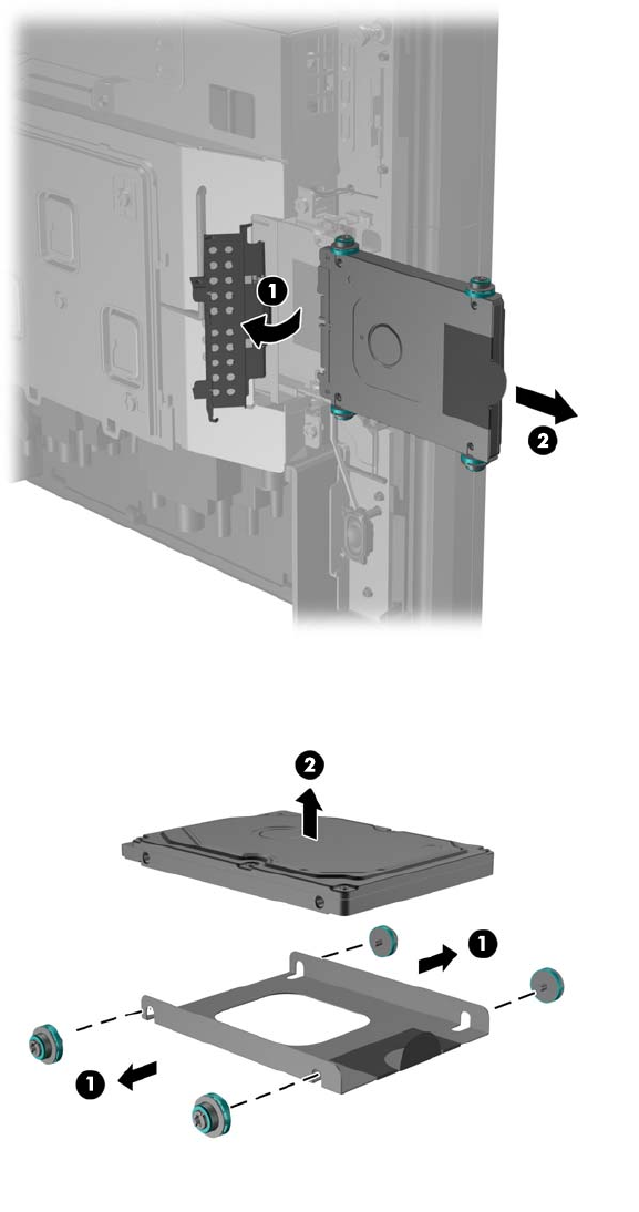 5. Open the hard drive door (1), then grasp the pull tab on the side of the hard drive and pull the