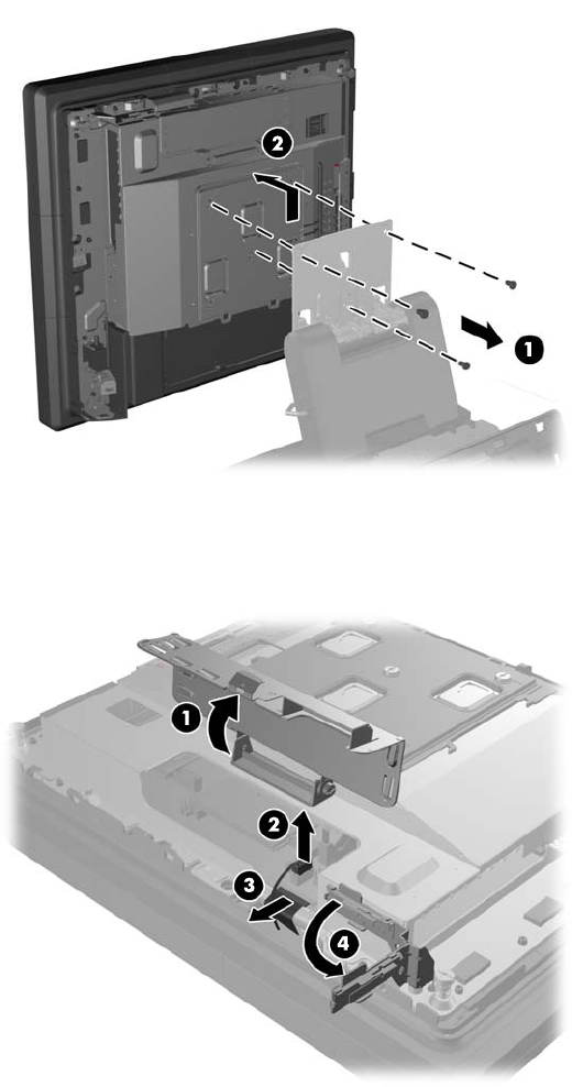 (3), then swing the antenna bracket out away from the chassis (4).