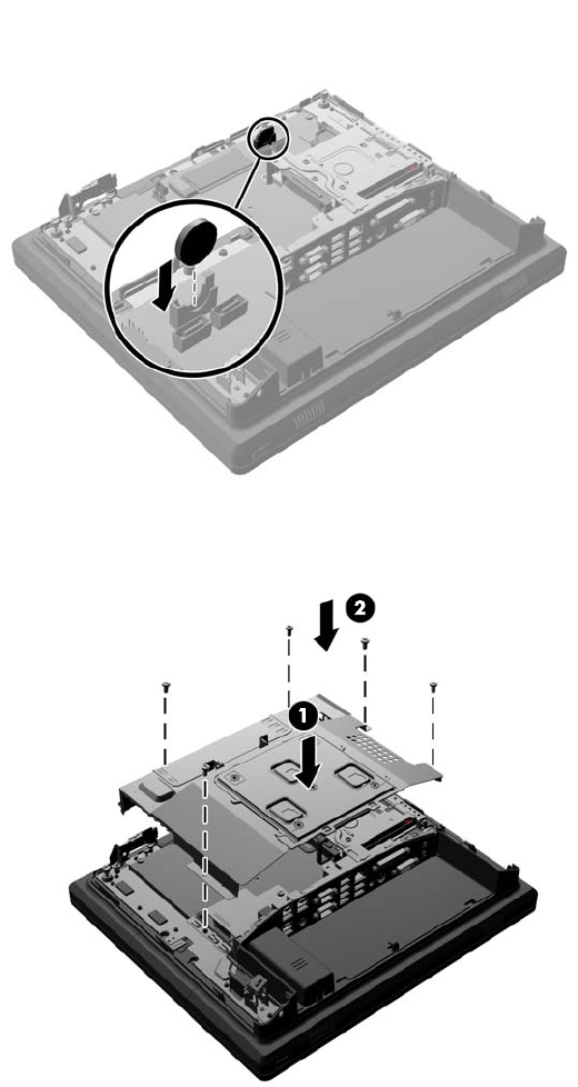 13. Place the metal plate on the back of the display head (1) and secure it to the display head with