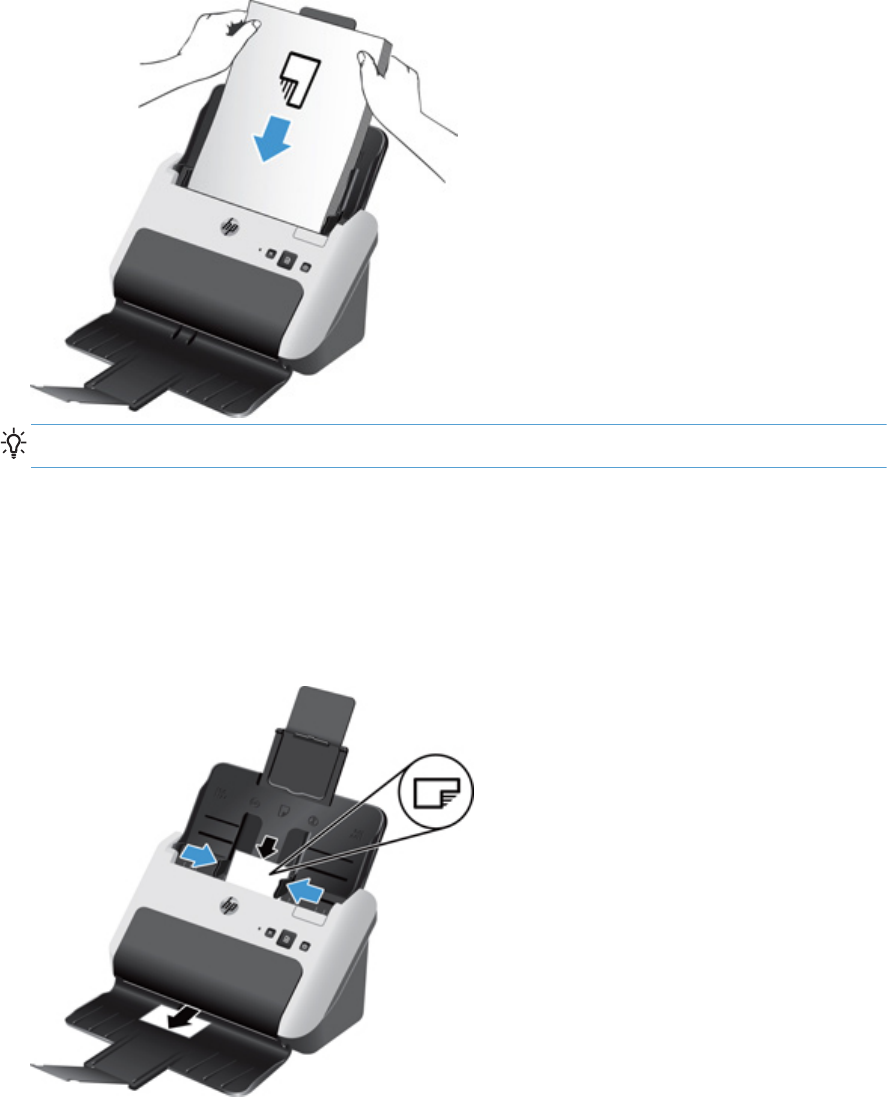 1. Place the stack of cards face down with the short dimension parallel to the paper guides.