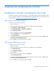 Enabling and configuring the controller Enabling the controller and setting the boot order The HP Smart Array B110i SATA RAID Controller is not enabled by default and must be enabled in RBSU. For more information on RBSU, see the HP ROM-Based Setup Utility User Guide on the Documentation CD or the HP website (http://www.hp.com/support/smartstart/documentation). HP ProLiant 100 Series servers To enable the controller and set boot order: 1. Power up the server. 2.